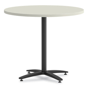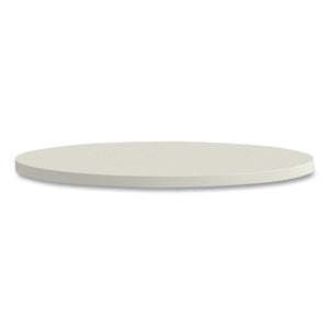 The round work surface brings everyone closer to their work. Scratch-, spill- and stain-resistant laminate stands up to heavy use. Easily attach a base using pre-drilled holes. Thick work surface provides a sturdy foundation for work. Durable edge-band provides a smooth, comfortable edge.