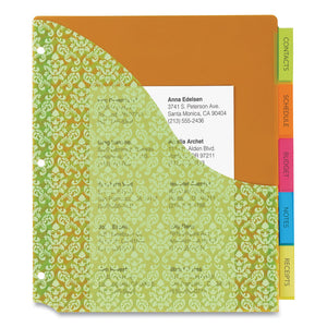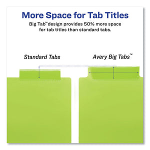 Big Tab™ dividers are bigger, providing 1.5 times more writing space than standard tabs. Special tab design secures inserts, making it easy to insert and remove tab titles. The plastic pocket holds up to 8.5" x 11" loose papers without folding or punching. Made of durable, tear-resistant plastic.