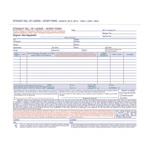 Bill of Lading - Short Form for Up to Ten Articles, Three-Part Carbonless, 8.5 x 6.94, 50 Forms Total