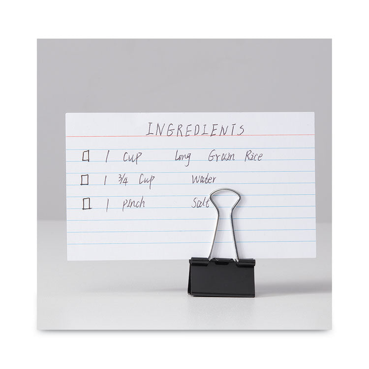 Ultra-efficient binder clips feature handles that can be hung, folded flat against clipped material, or removed for permanent binding. Efficient triangular design provides optimum strength and compression.