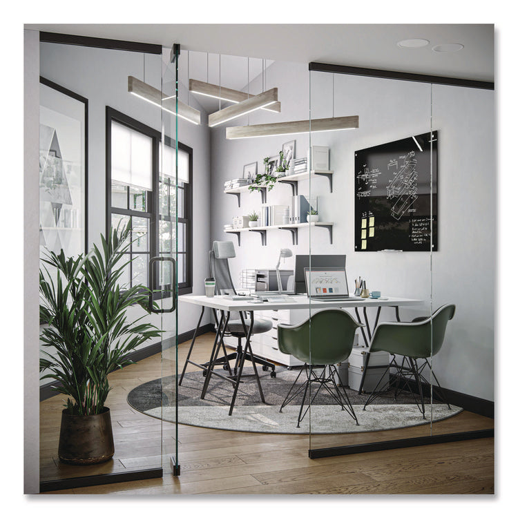 View Details- Enhance your workspace, set your ideas free and boost your productivity with this black glass dry erase board that offers high contrast to neon and bright markers and is an office, classroom, and home deoor must have.