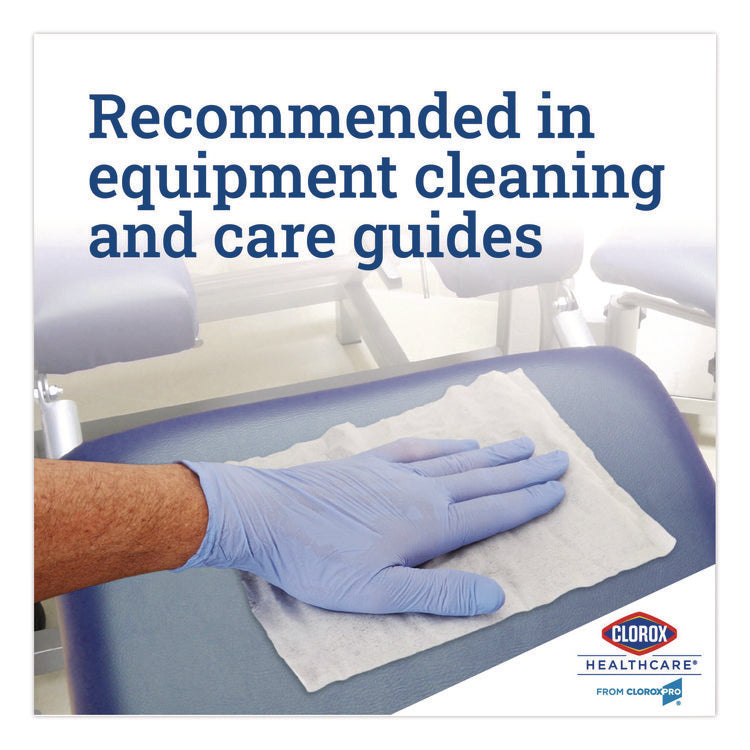 Your proven bleach solution for cleaning. Clorox Healthcare® Bleach Germicidal Wipes kill C. difficile and C. auris in three minutes and 58 other microorganisms in one minute or less, including outbreak causing viruses, emerging viral pathogens, MRSA and VRE when used as directed. With superior surface compatibility on a wide range of hospital surfaces, these disinfecting wipes help you cover more square footage per wipe with fast contact times and greater wetness surface coverage than the leading competitor. The phosphate free formula is optimized to be easy on surfaces and leaves less residue behind. Use in healthcare settings including hospitals, medical facilities, outpatient facilities and long term care facilities. Follow special instructions for cleaning prior to disinfection.