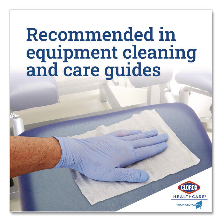 - With an optimized formula that leaves less residue behind, these hospital wipes are recommended in equipment cleaning and care guides.