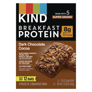 Breakfast Protein Bars, Dark Chocolate Cocoa, 1.76 oz Two-Bar Packs, 6/Box