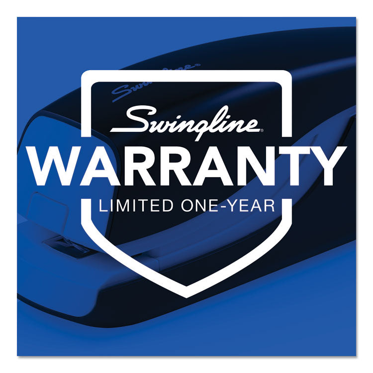 A durable plastic stapler with a small footprint. Small but powerful, this stapler is powered by 6 AA batteries (not included; not compatible with rechargeable batteries). Staples up to 20 sheets at a time. For best results, use Swingline® S.F.® 3 staples. Portable and compact, it's ideal for stapling in a small work space. Easy front-loading QuickLoad system ejects the staple magazine with the push of a button for faster staple refills. Holds a half strip of staples.