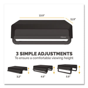 Breyta Monitor Stand, 13.94" x 11.97" x 3.25" to 6", Black, Supports 33 lbs