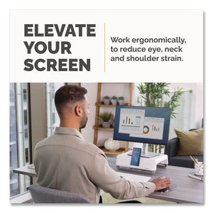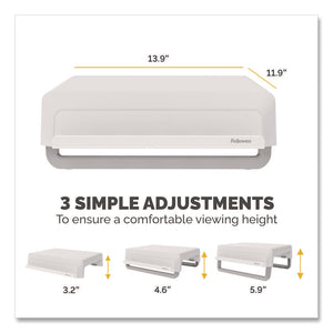 Breyta Monitor Stand, 13.94" x 11.97" x 3.25" to 6", White, Supports 33 lbs