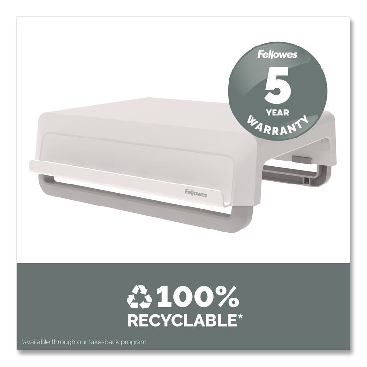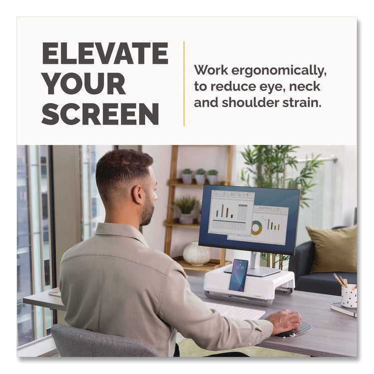 Featuring a modern design aesthetic and an innovative feature set, the Breyta™ Monitor Stand is an excellent choice for anyone who wishes to alleviate eye, neck and shoulder strain by elevating their monitor to a more comfortable level. With three height settings and a unique stacking column design, it's easy to achieve an ergonomic viewing angle; and since the stacking columns can be clipped flat against the underside of the platform, it's compact and portable, too, making it ideal for hybrid work scenarios. The support columns also feature an open-loop design and non-skid rubber feet to both accommodate cord management and deliver extra stability. Sturdy, high-impact plastic construction.