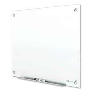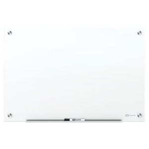 Writing stands out on our high-contrast, true white glass. Elevate your workspace with a frameless design and stunningly white surface that accents nearly any décor. Non-absorbent board is easy to erase and will not stain or ghost. Tempered glass resists scratches and dents. Included pass-through mounting hardware lets you easily install board. Comes with an accessory tray, two high-power glass board magnets, installation template and one Quartet dry-erase marker. For best results use Quartet Glass Board Accessories, sold separately.