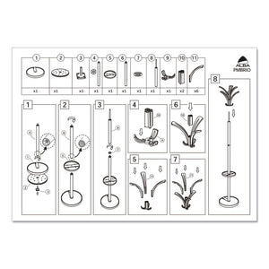View Details- This coat stand features a rotating head with six plastic large coat pegs and three hooks, one umbrella holder, water retainer and one metallic weighted base.