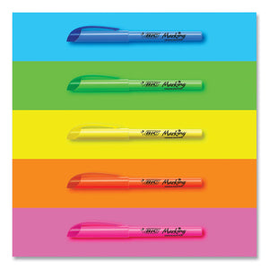 Whether you're organizing your notes or underlining passages in a textbook, BIC Brite Liner Highlighters make highlighting fun and easy. These highlighters come in a highly visible, fluorescent color, allowing you to easily color-code and emphasize information. Each highlighter has a versatile, firm chisel tip that allows you to seamlessly switch between broad highlighting and precise underlining. BIC Brite Liner Highlighters can be left uncapped for up to eight hours without drying out. And thanks to their convenient pen-shaped design, these flourescent highlighters are easy to grip and use.