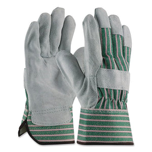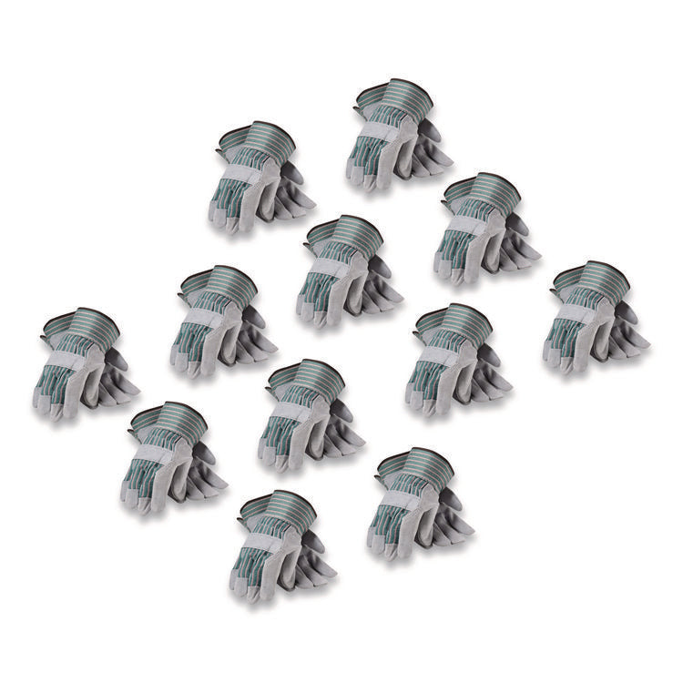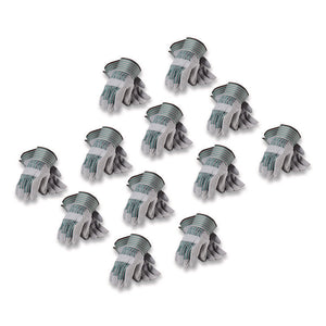 Bronze Series Leather/Fabric Work Gloves, Gunn Cut, Wing Thumb, Large (Size 9), Gray/Green, 12 Pairs