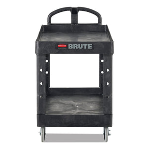 BRUTE Heavy-Duty Utility Cart with Lipped Shelves, Plastic, 2 Shelves, 750 lb Capacity, 25.25" x 54" x 39.25", Black
