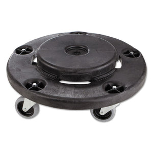Brute Round Twist On/Off Dolly, 250 lb Capacity, 18" dia x 6.63"h, Fits 20 to 55 Gallon BRUTE Containers, Black