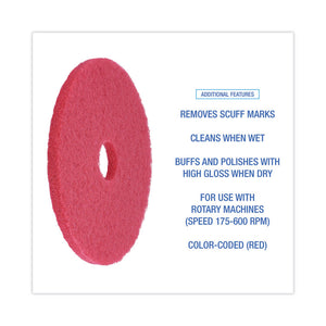 Buffing Floor Pads, 17" Diameter, Red, 5/carton