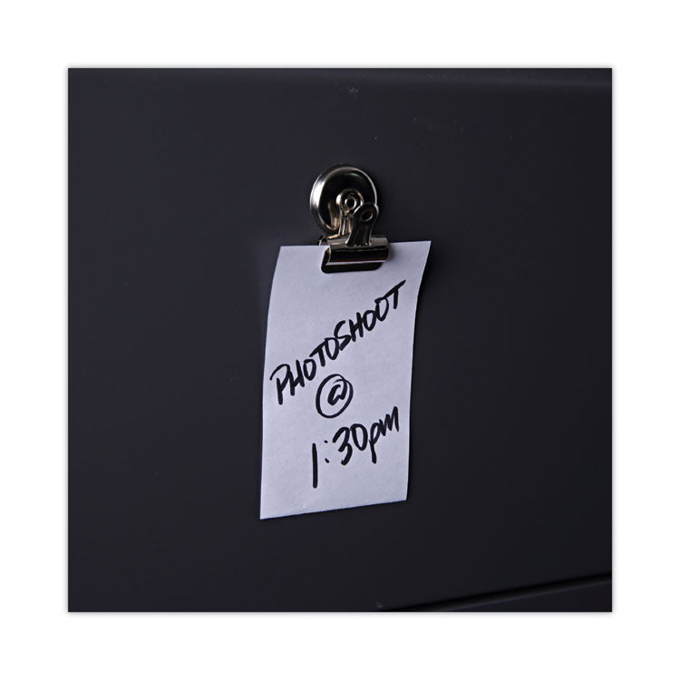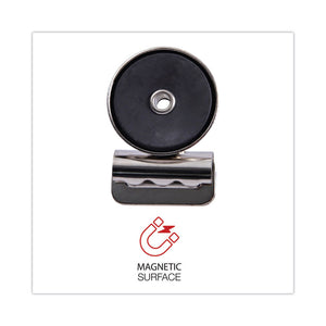 Durable, nickel-plated, magnetic clip is great for hanging notes, calendars, schedules, receipts, or photos on fridges, file cabinets, and other metal surfaces. The strong clip is built with heavy-duty construction for long-lasting, reliable use. The round, magnetic backing stays in place without sliding, even when holding multiple papers. Reinforced clip with added strength for gripping single or multiple sheets of paper with ease.