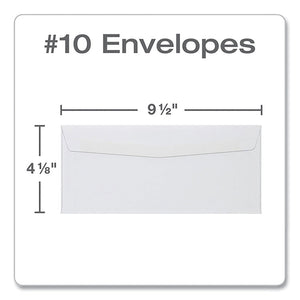 Business Envelope, #10, Commercial Flap, Side Seam, Gummed Closure, 24 lb Bond Weight Paper, 4.13 x 9.5, White, 500/Box