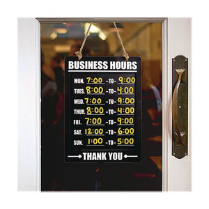 Business Hours Indoor/Outdoor Hanging Chalkboard, 10 x 0.38 x 20.75, Black/White