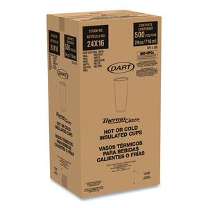 Add a touch of class to your office, breakroom or cafeteria with these attractive coffee-themed cups. Subtle color coding system helps customers and employees identify the correct cup size. Thermo-Glaze insulation helps maintain hot and cold beverage temperature while allowing you to hold cup comfortably. You'll save money because the Insulation reduces the need for double-cupping. Features attractive flared lip cup design and high-gloss surface.
