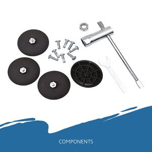 - Sturdy steel base with a durable powder coated finish.