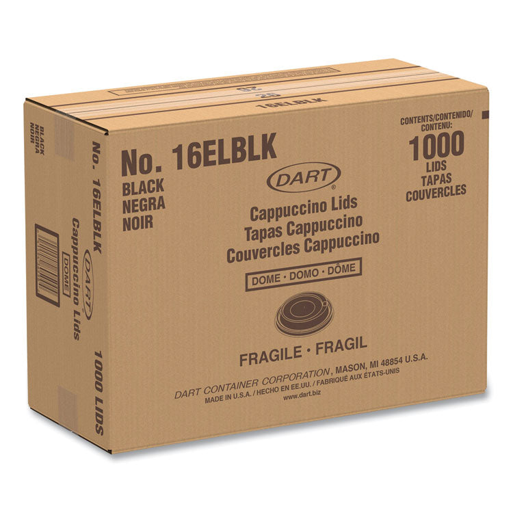 Cappuccino Dome Sipper Lids, Fits 12 oz to 24 oz Hot Cups, Plastic, Black, 100/Pack, 10 Packs/Carton