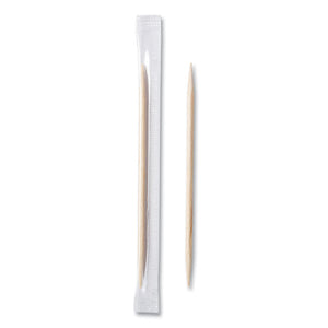 Choose high-quality white birch toothpicks for your customers and patrons. Each pick in wrapped in cellophane to ensure sanitary dispensing. Ultra-smooth sanded wood helps make a strong impression. Extra-sharp ends simplify use.
