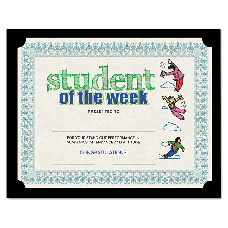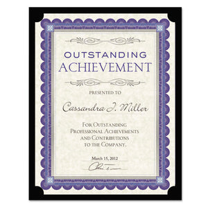 - Die-cut, curved-slit corners to secure certificate and a pop-out tab for easy hanging.