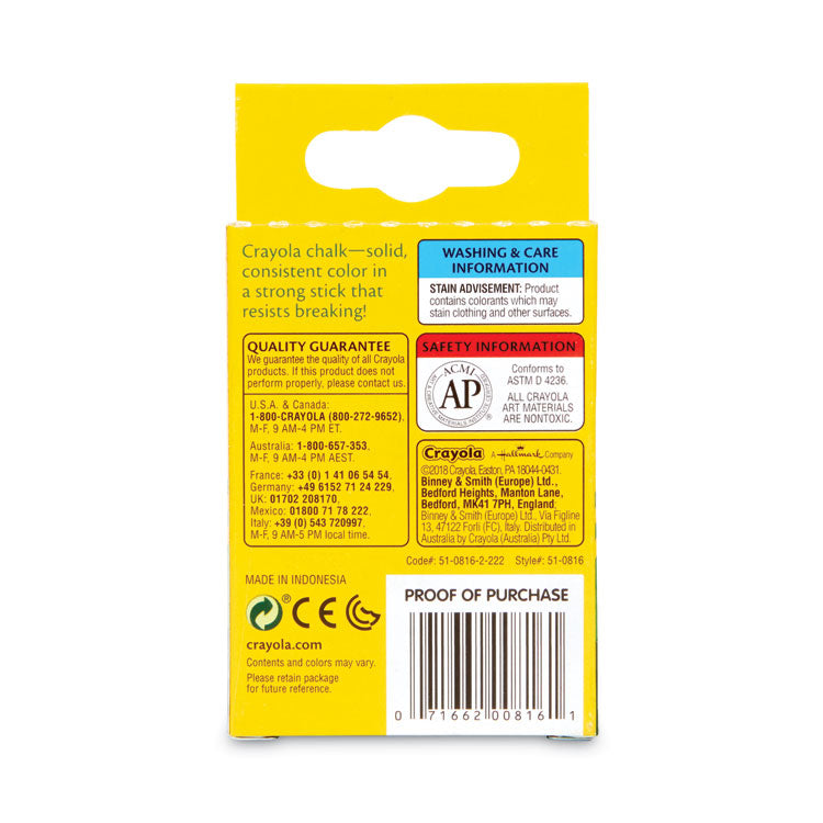 Bring home long-lasting chalk for craft rooms and art easels with craft chalk from Crayola. Crayola Chalk gives you solid, consistent color in a strong stick that resists breaking! Use it on children's chalkboards, construction paper, cardboard, craft paper and brown paper bags. This kid's chalk creates less dust for crisp, clean doodles, notes and drawings. It's a craft room essential for parents, with the reliability you expect from Crayola art supplies.