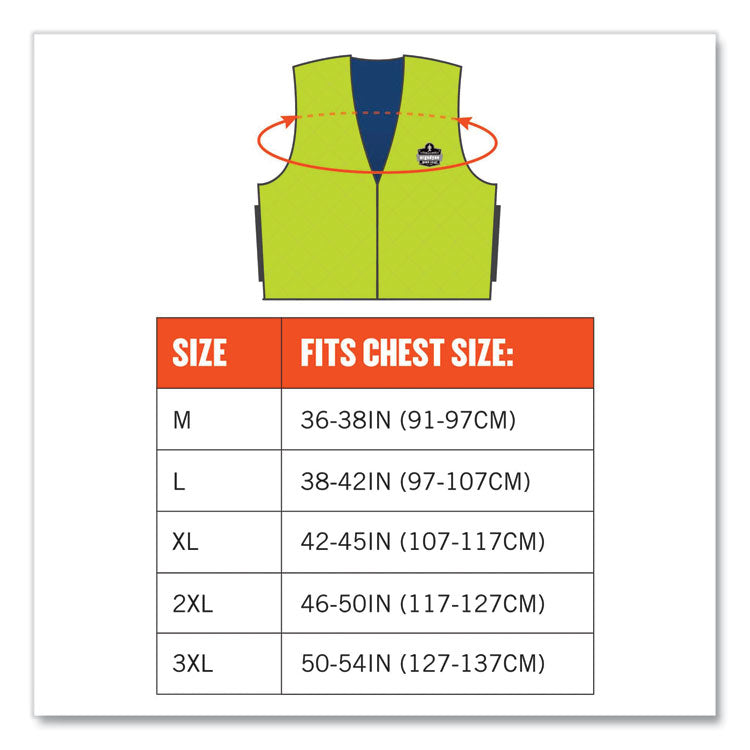 Chill-Its 6665 Embedded Polymer Cooling Vest with Zipper, Nylon/Polymer, Large, Lime