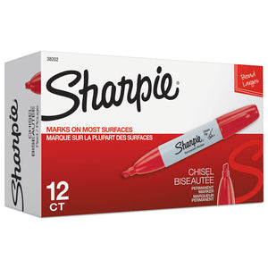 Chisel Tip Permanent Marker, Medium Chisel Tip, Red, Dozen