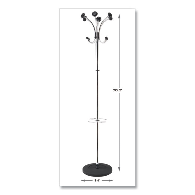 Chromy Coat Stand, 12 Knobs, 16w X 16d X 70.5h, Chrome/black