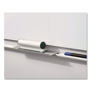 Frameless, seamless, hi-tech design with architectural quality. Combining form and function, this premium glass dry erase board features design and performance. Markers glide across the glass surface while the ultra-white backing makes writing bold and highly visible. Aluminum mounting elements allow the frameless design to "float" off the wall. 1/4" tempered safety glass will never stain or ghost. Includes clip-on marker and adjustable eraser tray.