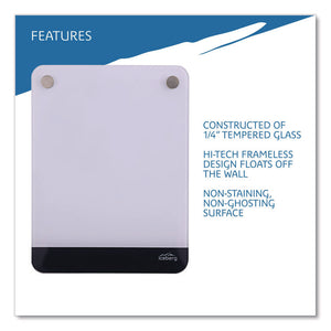 Clean, modern frameless design. This high-performance board features a premium glass dry erase surface for a smooth writing and a seamless design that "floats" off the wall. Ultra-white backing makes dry erase writing highly visible and provides high contrast to any wall color. Surface is constructed from tough 1/8" tempered safety glass and will never stain or ghost. Includes clip-on marker and eraser tray.