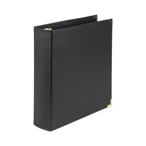 - Rigid, leather-like cover with hand-stitched edges and brass-plated metal rings and corners give a clean, professional, upscale appearance.
