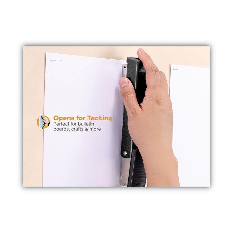 Classic all-metal style with superior reliable performance. A reliable favorite, this traditional-style stapler features a durable all-metal construction for a lifetime of use. Conveniently designed to open for bulletin board tacking, and adjust between temporary or standard stapling. Staples up to 20 sheets of paper. Uses standard staples.