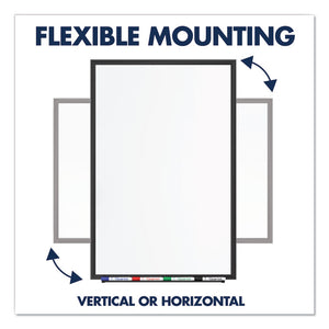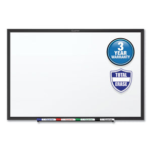 Total Erase® dry-erase board has a durable surface that resists ghosting and staining. Best suited for moderate use in spaces with regular traffic. Erases cleanly and will remain pristine with only occasional maintenance. Frame color complements virtually any décor. Board can be mounted vertically or horizontally with included mounting hardware. Extend surface life of board by cleaning regularly with Quartet® cleaning solutions. Marker tray and one Quartet® dry-erase marker included.