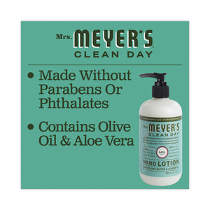 Made with thoughtfully chosen ingredients. Sweet almond oil and shea butter help to soften the driest hands. Moisturizing without being greasy or heavy feeling. Made with essential oils and plant derived ingredients. Made without parabens and phthalates, formaldehyde or artificial colors. Free of animal derived ingredients and not tested on animals. Non greasy hand lotion softens dry skin on hard working hands. Mrs. Meyer's products are made with cruelty free formulas.