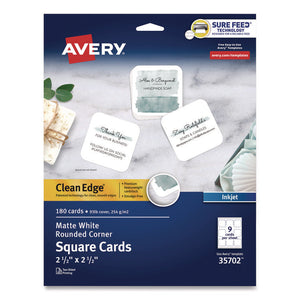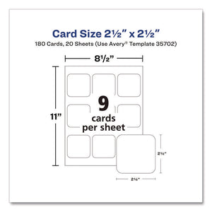 Clean Edge Square Cards, Inkjet, 2.5 x 2.5, 180 Cards, 9 Cards/Sheet, 20 Sheets/Pack
