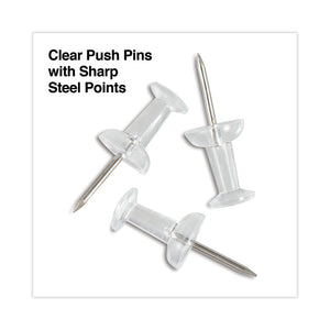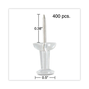 Clear Push Pins, Plastic, Clear, 0.38", 400/Pack