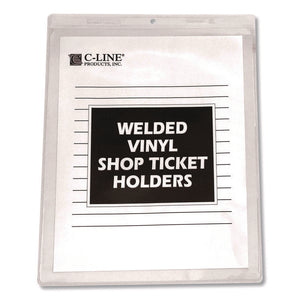 Keep job tickets, work orders, product schedules, inventory cards and more secure and protected. Super-heavyweight welded-vinyl construction and non-rip seams stand up to even the roughest use environment. Punched hole at the top allows for convenient hanging, making it easy to keep important information accessible. Clear on both sides, C-Line® Clear Vinyl Shop Ticket Holders are also ideal for two-sided documents. This product will be cheerfully replaced with one of equal value if defective in materials, manufacturing or packaging at the time of purchase.