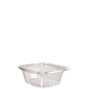 No matter what's inside, these containers keep your food safe, secure and looking good! Designed to prevent tampering without shrink bands or extra wrapping, our containers make sharing food easy. Keep contents fresh and prevent leaks with the secure perimeter seal. The tamper alert hinge has a visible seal that, if broken, makes it obvious the container has been opened. The specialty lid inhibits the ability to lift it from the base without tearing the hinge. Once the seal is broken, the now two-piece container is easy to re-close and continues to be leak-resistant. Make sure your food is the star of the show thanks to the crystal-clear material. Merchandising and delivery is a breeze the sturdy stackable design. They're even great for at-home use. Transport salads, fruits, or desserts to your next picnic, potluck, or bake sale.