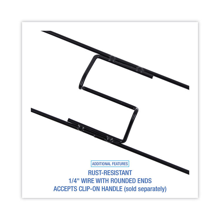Rust-resistant 1/4" wire dust mop frame with rounded ends. The metal frame is powder coat finished for strength and durability. Slides into a dust mop frame with ease and accepts clip-on handle. Keeps a dust mop flat for the most cleaning surface area. Ideal for use on delicate, hard surfaces such as hardwood, laminate, tile, and marble. Dust mop head and handle are sold separately.