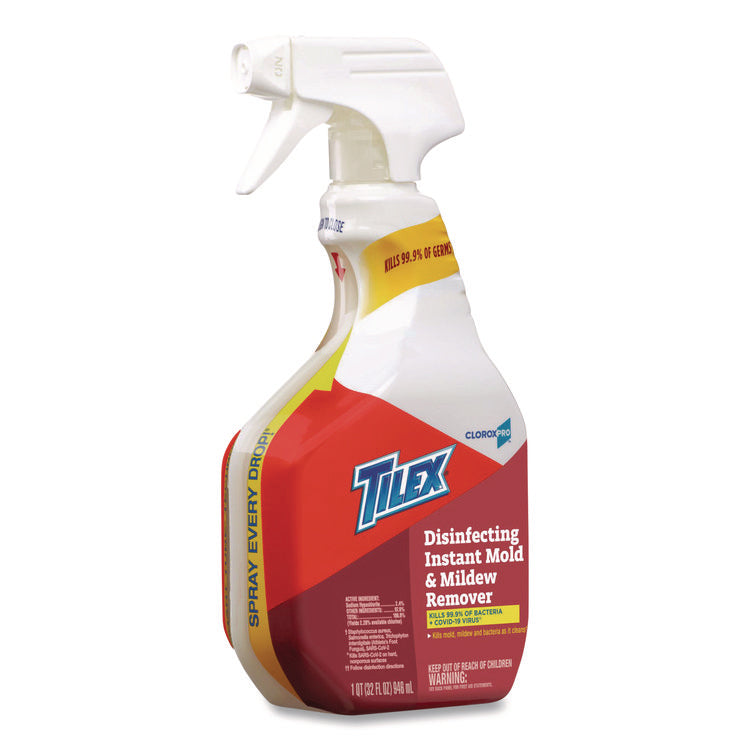 CloroxPro Tilex Disinfecting Instant Mold and Mildew Remover kills 99.9% of viruses (Staphylococcus aureus, Salmonella enterica, Trichophyton interdigitale (Athlete's Foot Fungus), Influenza A) and bacteria, including SARS-CoV-2 the virus that causes COVID-19 on hard, non-porous surfaces when used as directed. This disinfecting spray kills mold, mildew, and bacteria as it cleans, removing mildew stains without scrubbing. The unique formula whitens tile and grout and dissolves soap scum as you spray. It removes and destroys mold spores and cleans tiles, grout, toilets and fiberglass. CloroxPro mildew remover is ideal for offices, day care centers, schools, hotels, restaurants and other commercial facilities. Spray every drop with Smart Tube technology that reaches to the very bottom of the bottle. CloroxPro, where clean means everything. Packaging may vary.