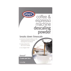 - Descaling powder removes mineral scale that builds up on the heating element of every coffee maker.