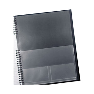 Ruled daily blocks for more legible entries. Textured hard cover with twin wire binding lies completely flat or folds back. Double-sided pocket for keeping loose papers. Sturdy hard cover makes book archivable.