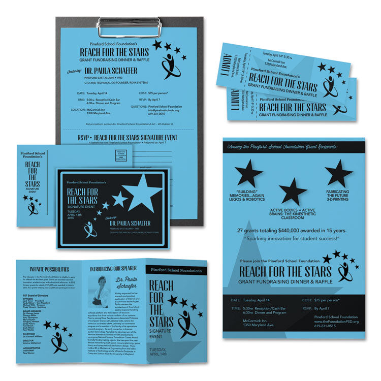 When you need to stand out with bold, high-impact color in a durable cover weight, Astrobrights® Colored Card Stock is a brilliant choice. It's thick enough to stand up to frequent handling and the rigors of postal machines, yet it's smooth enough to work with inkjet and laser printers. Since this unique colored paper is highly saturated, it offers a bright background for your creativity to come to life. Easily create dazzling postcards, booklet covers, presentation bindings and paper crafts. Brighter colors. Brighter ideas. Pair it with Astrobrights® Color Paper for a unified and consistent look to your project, and pair it with other Astrobrights® Colors or Neenah® Bright White Card Stock for a bold, brilliant impact. According to studies conducted by the American Paper Institute and the Color Marketing Group, color increases written information retention by 18 percent, improves readership by as much as 40 percent; and for direct mail, color increases response rates by up to 20 percent.