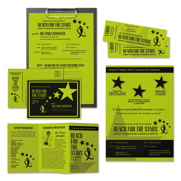 When you need to stand out with bold, high-impact color in a durable cover weight, Astrobrights® Colored Card Stock is a brilliant choice. It's thick enough to stand up to frequent handling and the rigors of postal machines, yet it's smooth enough to work with inkjet and laser printers. Since this unique colored paper is highly saturated, it offers a bright background for your creativity to come to life. Easily create dazzling postcards, booklet covers, presentation bindings and paper crafts. Brighter colors. Brighter ideas. Pair it with Astrobrights® Color Paper for a unified and consistent look to your project, and pair it with other Astrobrights® Colors or Neenah® Bright White Card Stock for a bold, brilliant impact. According to studies conducted by the American Paper Institute and the Color Marketing Group, color increases written information retention by 18 percent, improves readership by as much as 40 percent; and for direct mail, color increases response rates by up to 20 percent.