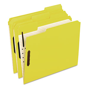 Colored Classification Folders with Embossed Fasteners, 2 Fasteners, Letter Size, Yellow Exterior, 50/Box