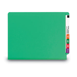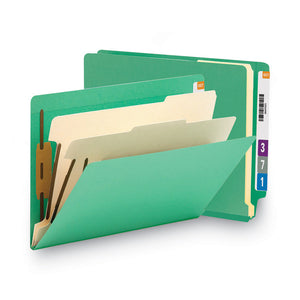 Colored End Tab Classification Folders with Dividers, 2" Expansion, 2 Dividers, 6 Fasteners, Letter Size, Green, 10/Box