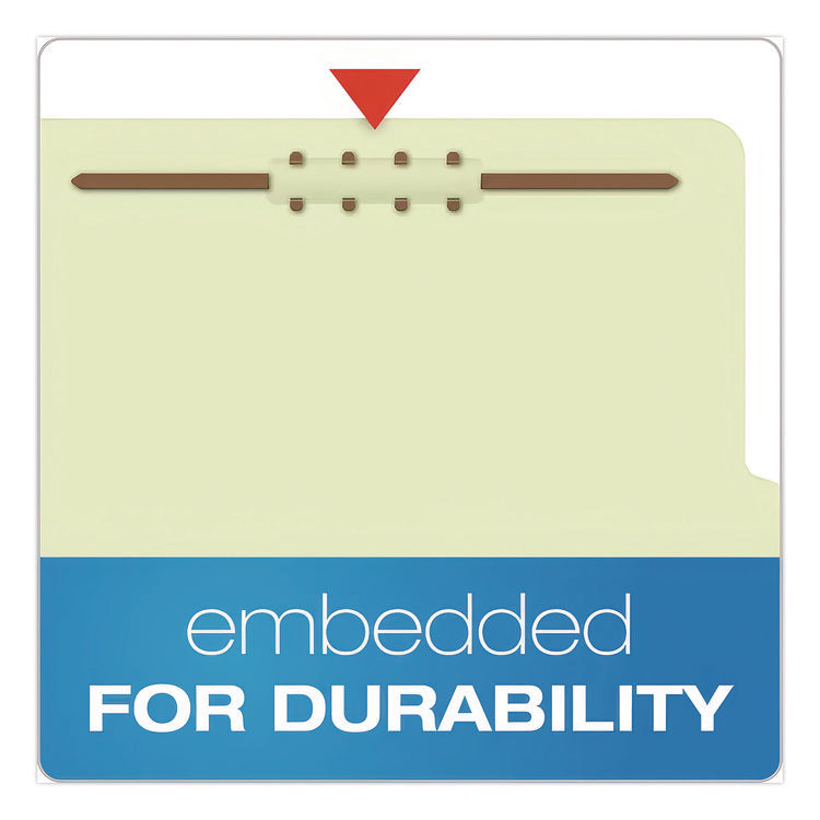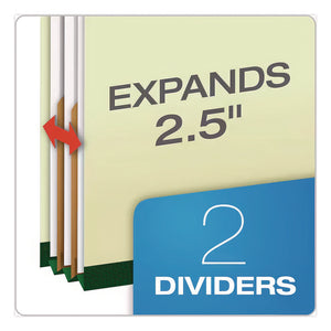 Colored Pressboard Top Tab Classification Folders, 2.5" Expansion, 2 Dividers, 6 Fasteners, Legal Size, Light Green, 10/Box
